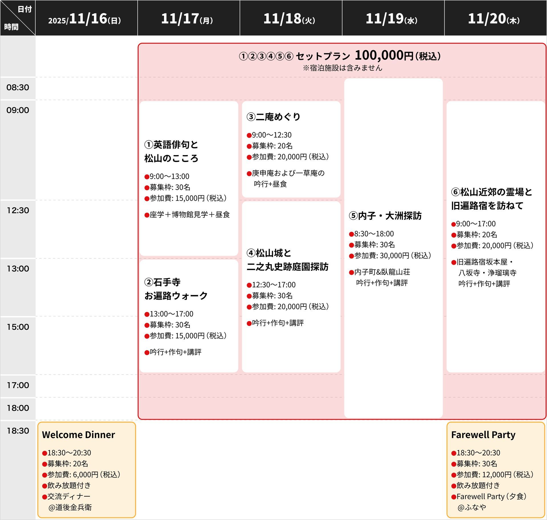 ⚫︎ 全ツアーをセットで申し込むとお得な代金に